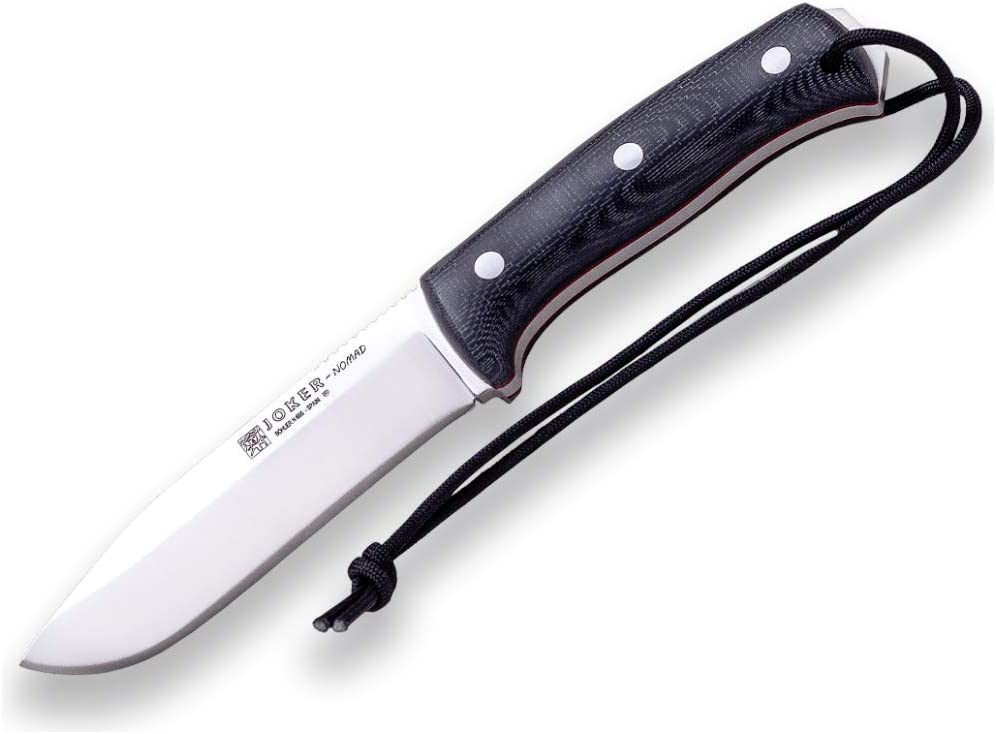 Joker Bushcraft Nomad Knife CM125-P, 5 inches Blade of Böhler N695 Steel, with Fire Starter and Black Canvas Leather Sheath
