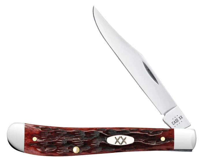 Our handsome Peach Seed Jig Mahogany Bone knives offer a wide selection of choices for those searching for a classic look in their everyday carry. All six patterns bear a unique XX® shield, the mark of Case’s “Tested Twice” dependability. The Slimline Trapper is a thinner version of the Trapper and only includes one blade, the Clip Blade. The Clip blade is commonly used as a multi-purpose blade and preferred for detail work. The Slimline Trappers are commonly used for skinning and fleshing animals.This knife is fitted with high carbon steel blades known for their high tensile strength, wear resistance, and toughness. Many prefer this steel for its edge retention and ease of re-sharpening. Since these are not stainless steel blades, a thin coat of oil applied on them after each use can help maintain their original finish. Comes conveniently packaged in a box. Made in Bradford, PA, USA from domestic and imported materials.